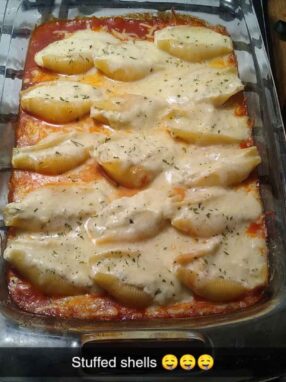 Ingredients °Boiling jumbo – boil first °Spaghetti sauce °15 ounces ricotta cheese °8 ounces torn mozzarella °1/2 cup fresh grated Parmesan cheese °1 Egg °1 tbsp parsley °1 tbsp basil °1 teaspoon oregano °Salt °Fresh …