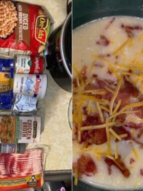 Ingredients:1 bag frozen diced potatoes1 can cream of chicken soupCheese (cheddar or your choice), shredded, to your liking1/2 cup sour cream1 block cream cheese1 box (32 oz) chicken brothBacon, fried and cut into piecesSalt and …