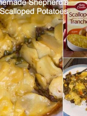 Ingredients:1 box scalloped potatoes1 lb ground beef1 onion, diced1 carrot, diced1 can corn, drained1 can peas, drained1 teaspoon Worcestershire sauce2 tablespoons beef bouillon powder1/2 cup white wineButter for cookingOregano, to tasteGarlic powder, to tasteThyme, to …