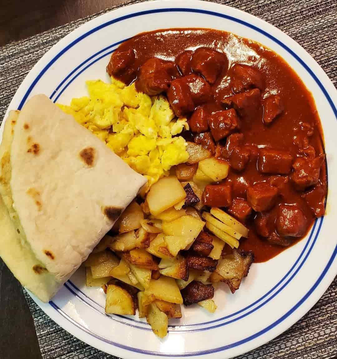 Red Chile Pork with Papas, Huevos & Fresh Tortillas